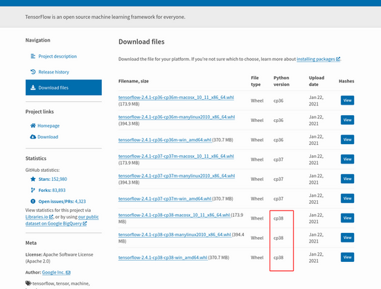 因?yàn)槭?Python 3.9 ,去 pypi 搜索了,居然還真沒(méi)有支持的,最高只有 Python 3.8 :