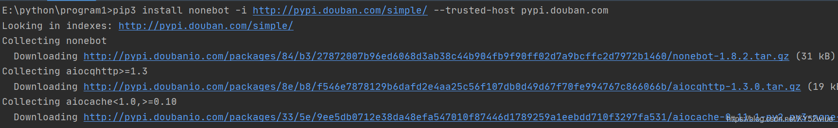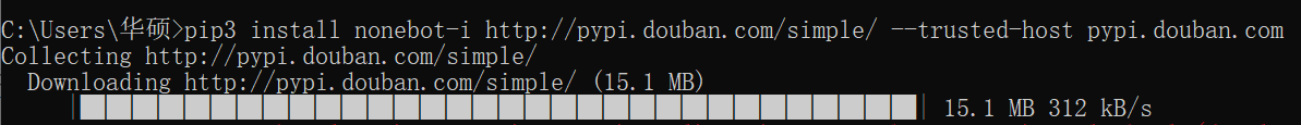 pip3 install nonebot -i http://pypi.douban.com/simple/ --trusted-host pypi.douban.com