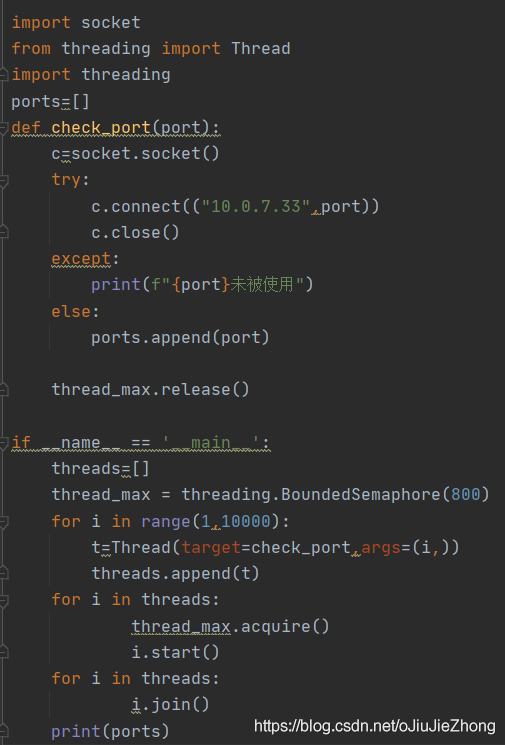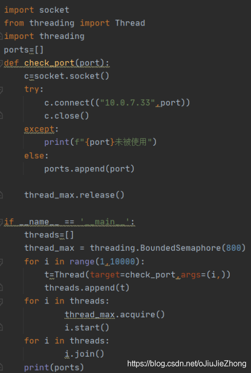 到此這篇關(guān)于Python掃描端口的實(shí)現(xiàn)的文章就介紹到這了,更多相關(guān)Python掃描端口內(nèi)容請(qǐng)搜索腳本之家以前的文章或繼續(xù)瀏覽下面的相關(guān)文章希望大家以后多多支持腳本之家!