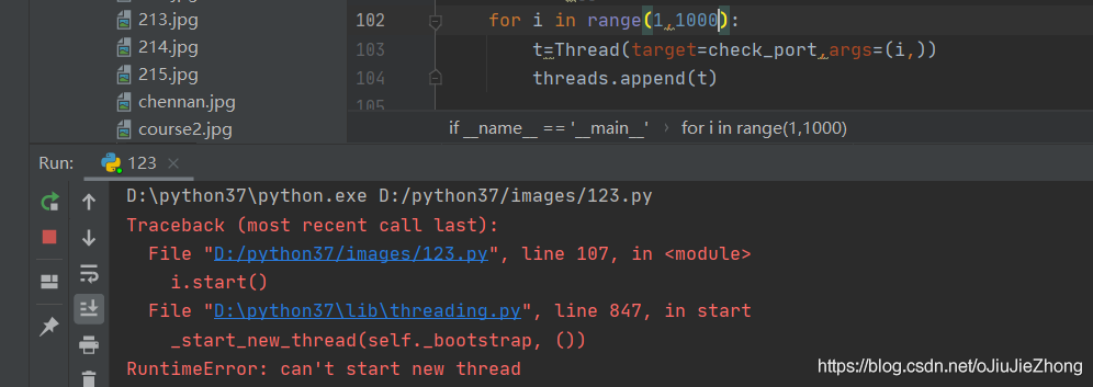 此時(shí)發(fā)現(xiàn)線程小于等于800時(shí),代碼可以正常運(yùn)行,大于時(shí)會(huì)出現(xiàn)報(bào)錯(cuò),發(fā)現(xiàn)是線程并發(fā)數(shù)量太多,系統(tǒng)不支持如此多的線程并發(fā)。