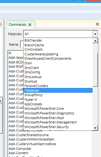 新版本的PowerShell ISE的一個(gè)很實(shí)用的功能是可以查看、搜索模塊與命令: