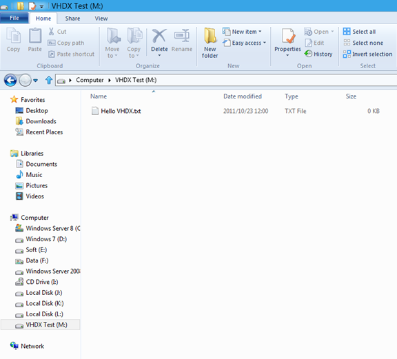 在Windows Server 8中,可以直接掛載VHDX虛擬磁盤格式:
