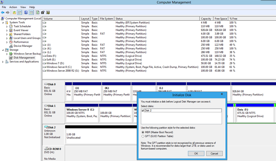 可以在磁盤管理器中對其進(jìn)行初始化: