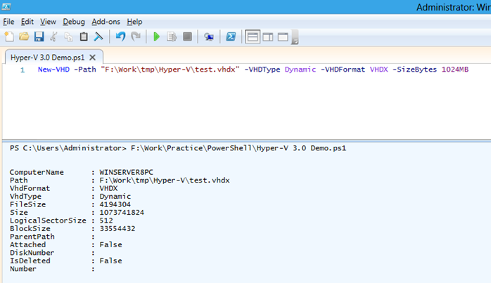 New-VHD-Path"F:\Work\tmp\Hyper-V\test.vhdx"-VHDTypeDynamic-VHDFormatVHDX-SizeBytes1024MB