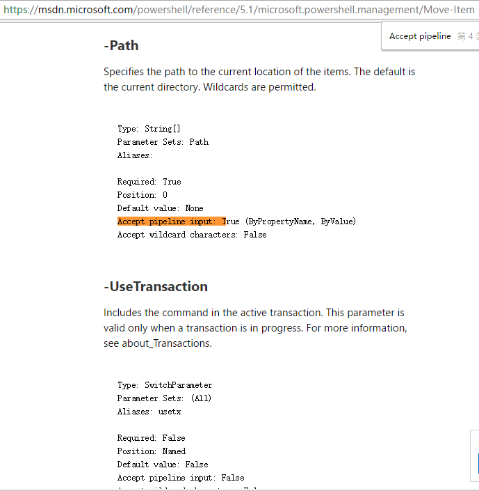 對(duì)于里面的-Path則是支持管道輸入,-UseTransaction則不支持管道輸入: