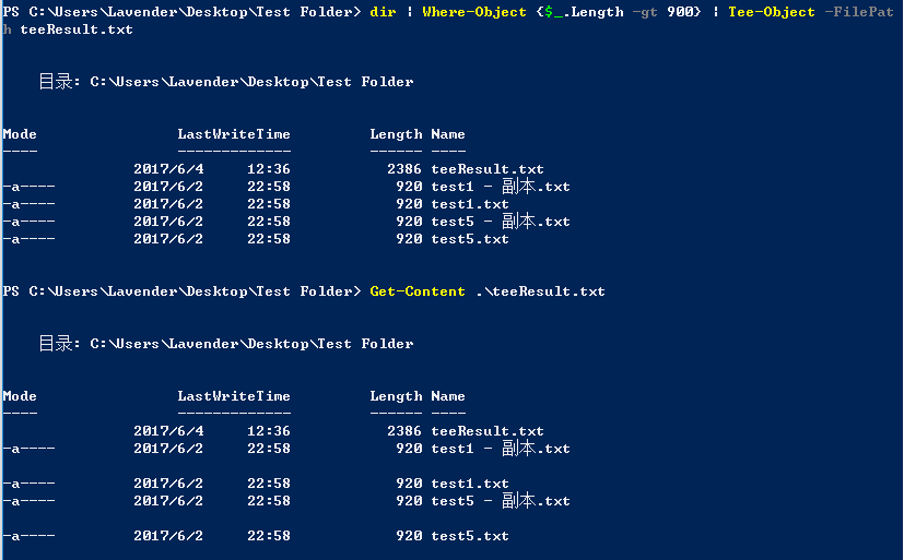 使用Tee-Object(別名是tee)命令可以將命令輸出結(jié)果保存在文件或者變量中,同時(shí)將其顯示在控制臺(tái)中。