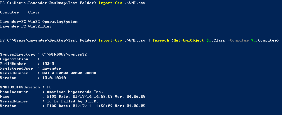 如果要對(duì)大量的數(shù)據(jù)進(jìn)行處理簡(jiǎn)單的任務(wù),可以把數(shù)據(jù)保存在一個(gè)CSV文件里面,使用Import-Csv來(lái)導(dǎo)入數(shù)據(jù),導(dǎo)入后為每一行自動(dòng)創(chuàng)建對(duì)象,并將列的名字作為對(duì)象的屬性,之后用foreach對(duì)數(shù)據(jù)的每一項(xiàng)進(jìn)行操作。