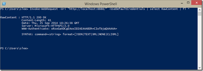 注意我使用 –UseDefaultCredentials來確保使用我的當(dāng)前安全上下文來驗證,否則你會被告知匿名訪問不支持。
