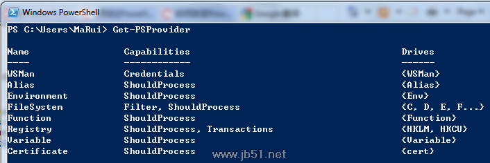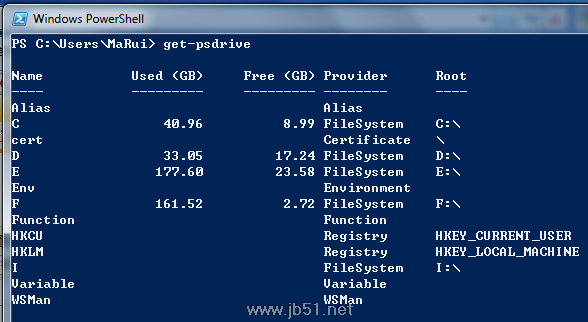 可以通過PowerShell中的PSDriver來獲取當前驅(qū)動器列表,基本上所有的Provider都有一個唯一的PSDriver,但是文件系統(tǒng)和注冊表卻是個例外,通過下面的命令查看: