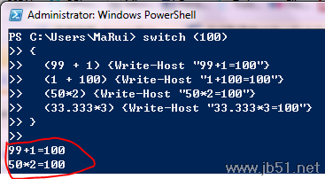 (50*2) {Write-Host "50*2=100"}