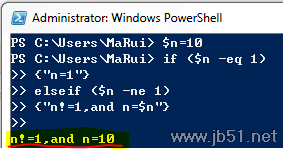 elseif ($n -ne 1)