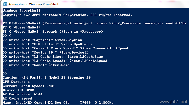 write-host "L2 Cache Size:" $item.L2CacheSize