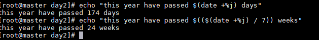 echo "this year have passed $(($(date +%j) / 7)) weeks"