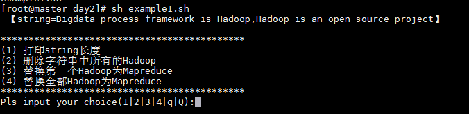 執(zhí)行腳本后,打印輸出string字符串變量,并給出用戶以下選項: