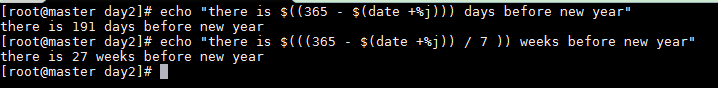 echo "there is $(((365 - $(date +%j)) / 7 )) weeks before new year"
