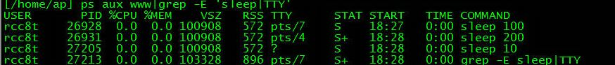 可以看出在前臺(tái)的進(jìn)程狀態(tài)為S+,而在后臺(tái)的sleep進(jìn)程狀態(tài)都是S