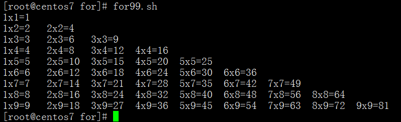 echo -ne "${column}x${row}=$[${column}*${row}]\t"