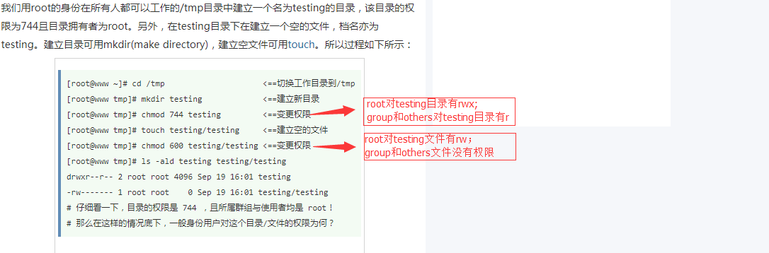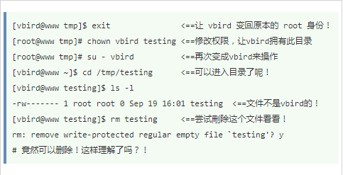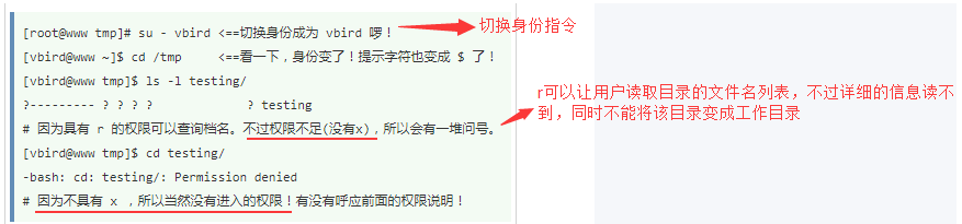 注意:要開(kāi)發(fā)目錄給任何人瀏覽時(shí),應(yīng)該至少要給予r和x權(quán)限,w不可以隨便給;x在目錄中與能否進(jìn)入該目錄有關(guān)