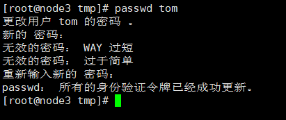 注意:root用戶能修改任何用戶的密碼。而普通用戶只能修改自己的密碼,而且密碼要符合密碼規(guī)則,不然修改不了