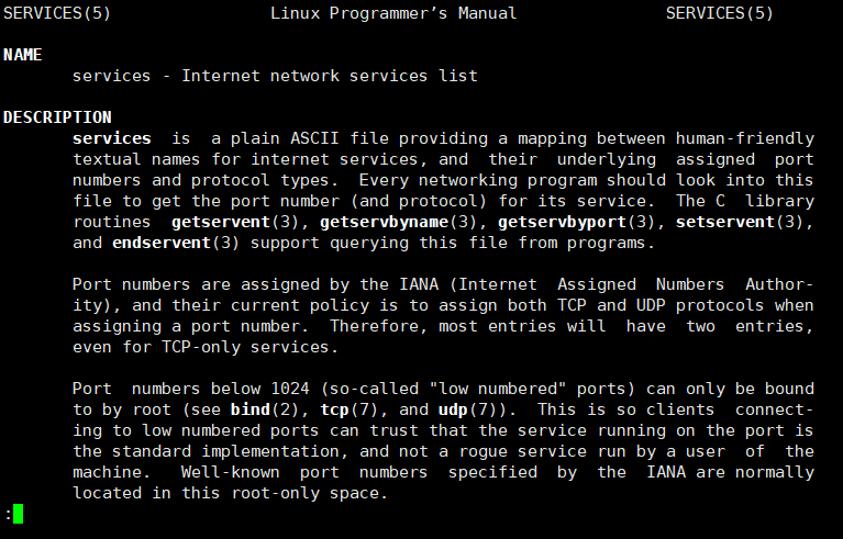 注意查看配置文件不需要加上絕對路徑,如果是 man /etc/services,那么顯示的就是services的文件內(nèi)容。