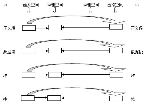 (1) 復(fù)制P1的正文段,數(shù)據(jù)段,堆,棧這四個部分,注意是其內(nèi)容相同。