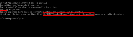3.使用httpd.exe -k install安裝Apache.這時候會報服務(wù)器路徑錯誤: