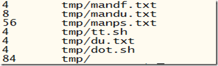 解釋:同時(shí)打印du.txt 和 mandu.txt的大小(默認(rèn)單位是字節(jié)bytes)