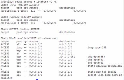 [root@hyj ~]# iptables -A INPUT -p tcp --dport 873 -j ACCEPT