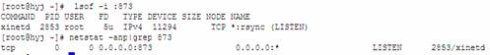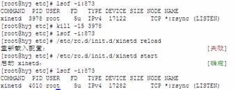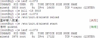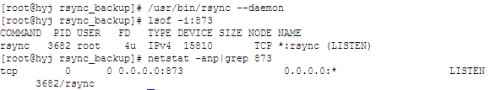 9、 在啟動之前,可以先看一下rsync是否已經(jīng)啟動運行:用lsof或者nestat都可以