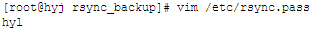 [root@hyj rsync_backup]# vim /etc/rsync.pass