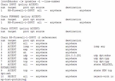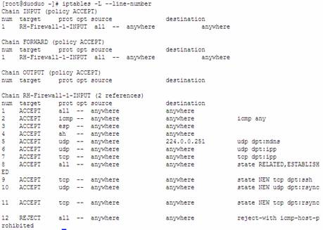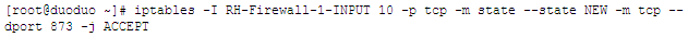(1)、[root@duoduo ~]# iptables -I INPUT -p tcp --dport 873 -j