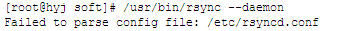 14、啟動rsync,如果報如下錯誤,是因為在etc下沒有rsyncd.conf配置文件: