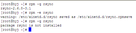 3、 如果在開始安裝RedHat的時候,使用默認(rèn)選擇的rysnc軟件,但現(xiàn)在想用更高版本的rsync,可以卸載掉rysnc,再安裝更高版本的軟件: