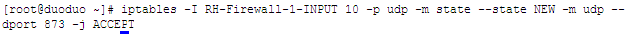 [root@duoduo ~]# iptables -I INPUT -p udp --dport 873 -j ACCEPT