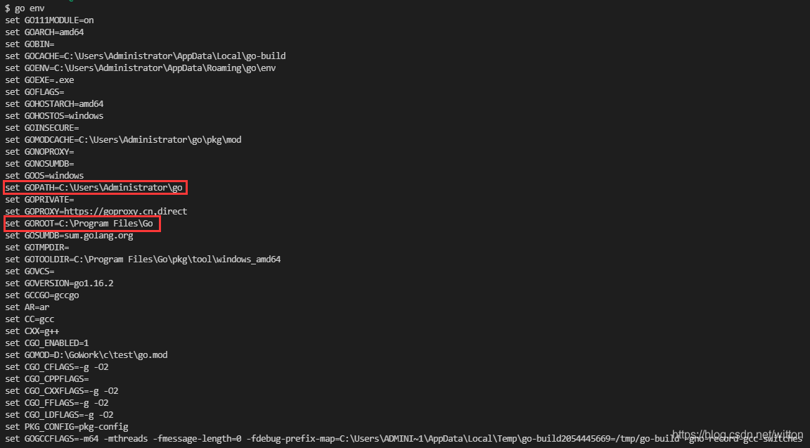 筆者使用的VSCode,在終端中查看Go的環(huán)境變量,主要看GOROOT以及GOPATH,筆者的GOROOT在C:\Program Files\Go。