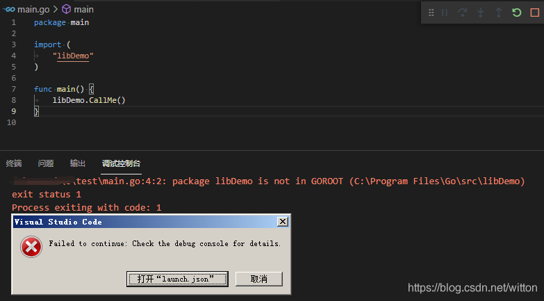將libDemo目錄移動到${GOROOT}\src下,筆者的為C:\Program Files\Go\src。此時再運行會報錯了: