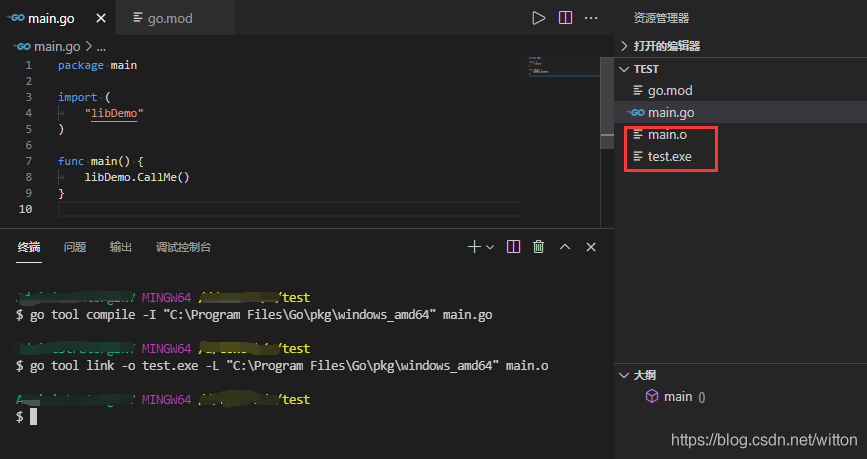 go tool link -o test.exe -L "C:\Program Files\Go\pkg\windows_amd64" main.o