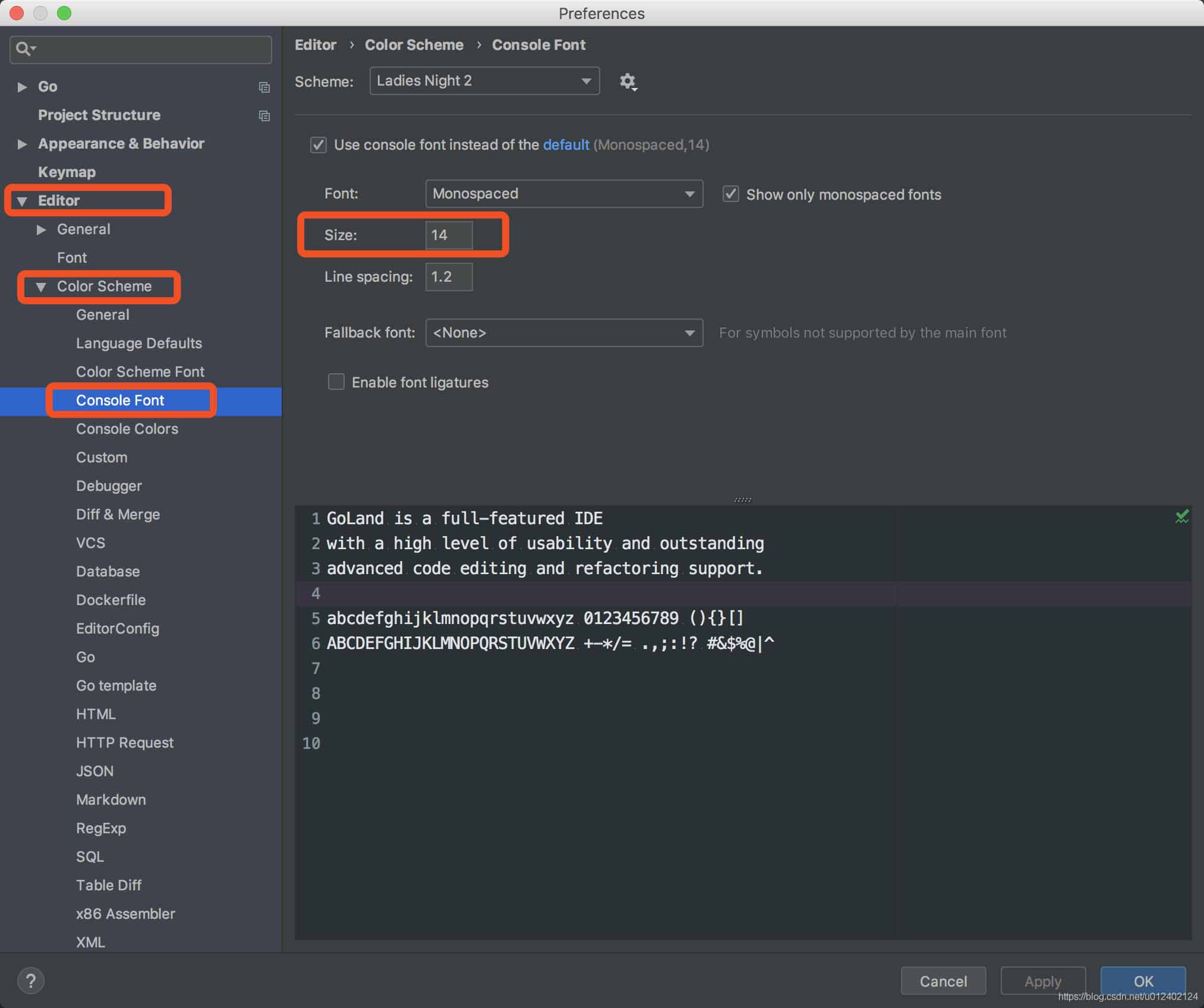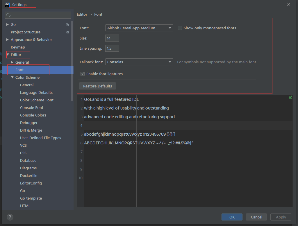 巨人網(wǎng)絡(luò)通訊聲明:本文標(biāo)題《goland設(shè)置顏色和字體的操作》,本文關(guān)鍵詞 goland,設(shè)置,顏色,和,字體,;如發(fā)現(xiàn)本文內(nèi)容存在版權(quán)問題,煩請(qǐng)?zhí)峁┫嚓P(guān)信息告之我們,我們將及時(shí)溝通與處理。本站內(nèi)容系統(tǒng)采集于網(wǎng)絡(luò),涉及言論、版權(quán)與本站無關(guān)。