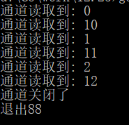 演示了close關(guān)閉通道,使用2個返回值來讀取通道,獲取通道關(guān)閉狀態(tài)。