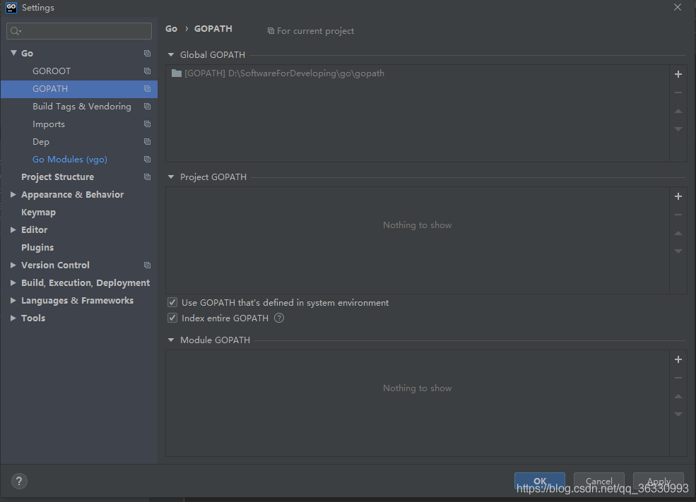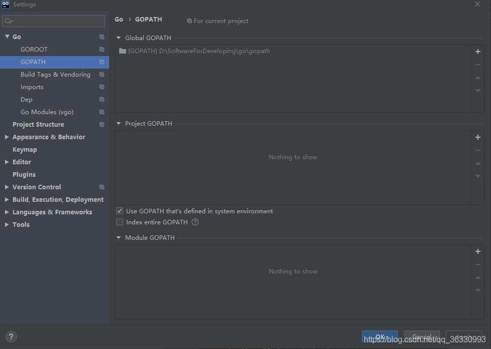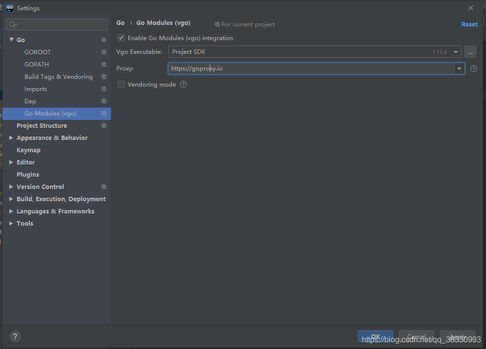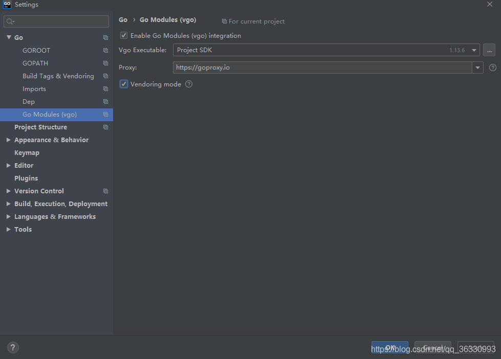 Go Modules(vgo)enable選項注意取消勾選或者勾選