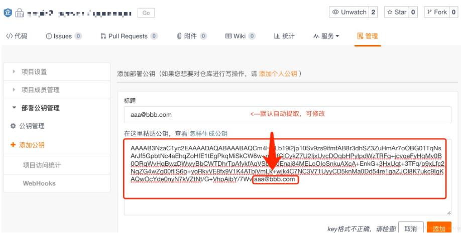 相對賬戶設(shè)置,大家比較熟悉,這里簡單描述一下項目的公鑰設(shè)置。登錄平臺->選擇項目->進(jìn)入“管理”->點(diǎn)擊左側(cè)的“公鑰管理”->點(diǎn)擊“添加部署公鑰”,將剛剛生成的公鑰填寫到“公鑰”欄,并為它起一個名稱,保存即可。