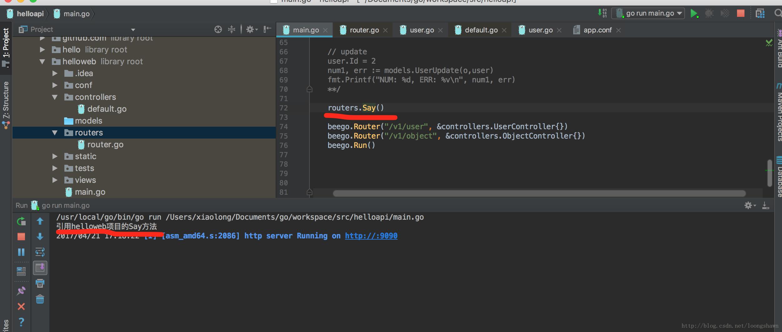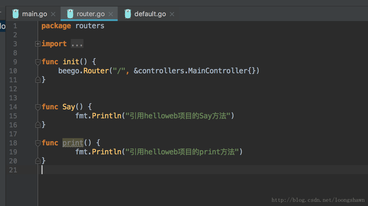 fmt.Println("引用helloweb項(xiàng)目的print方法")