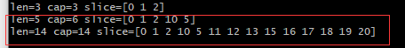 //通過append給numbers增加信息,如果當前切片的長度小于容量,增加信息的長度與當前長度和小于等于容量,