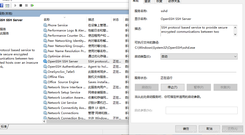 安裝完成, 打開OpenSSH設(shè)置自動(dòng)啟動(dòng)