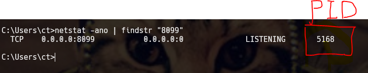 netstat -ano | findstr 8099