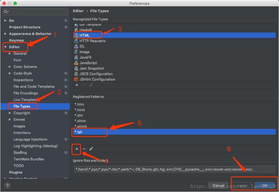 按順序 editor->file types,在recongized fiel types中找到HTML,然后在下面可以看到 后綴形式,點(diǎn)擊添加*.tpl 然后保存退出 就可以搞定了。