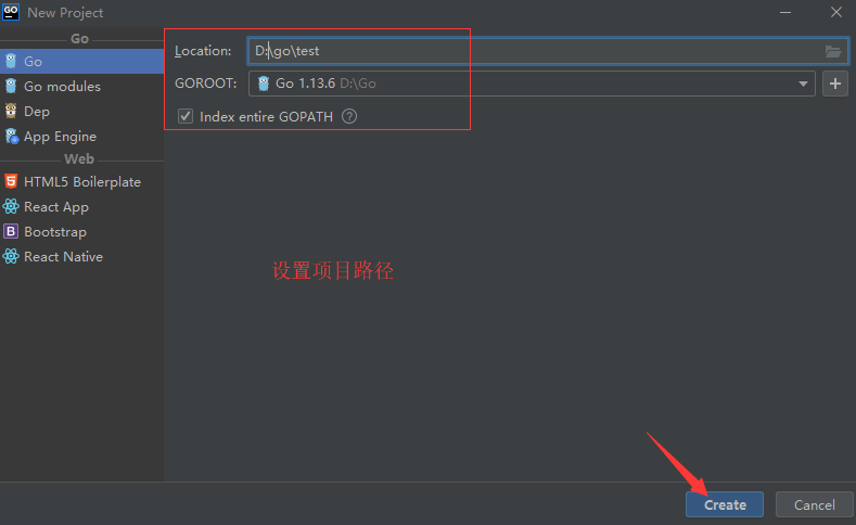 8.設(shè)置項(xiàng)目路徑,點(diǎn)擊【Create】,進(jìn)入軟件主界面