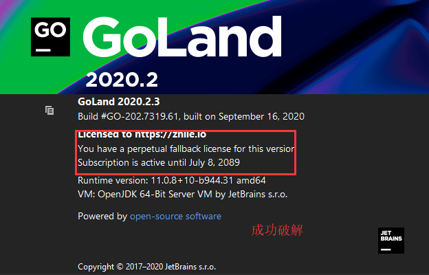 15.如果彈出2089等以下信息,證明GoLand 激活成功,可以永久使用!