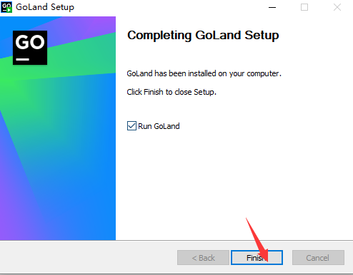 5.等待幾十秒鐘安裝后,選中運(yùn)行目標(biāo)并單擊Finish,GoLand將啟動(dòng)