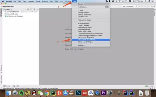 進(jìn)入到項(xiàng)目界面后,點(diǎn)擊GoLand最上面的菜單欄中的 “Help” -> “Edit Custom VM Options …”,如果提示是否要?jiǎng)?chuàng)建文件,請(qǐng)點(diǎn)”Yes”。